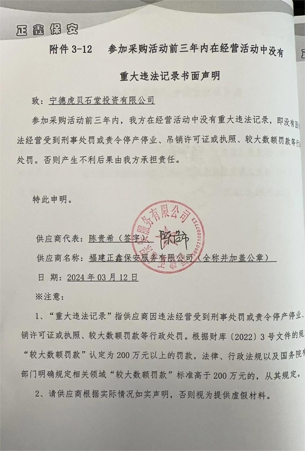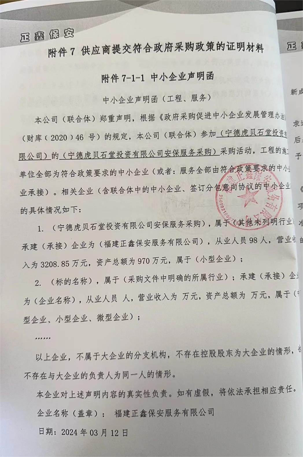 寧德虎貝石堂投資有限公司安保服務(wù)采購(gòu) |