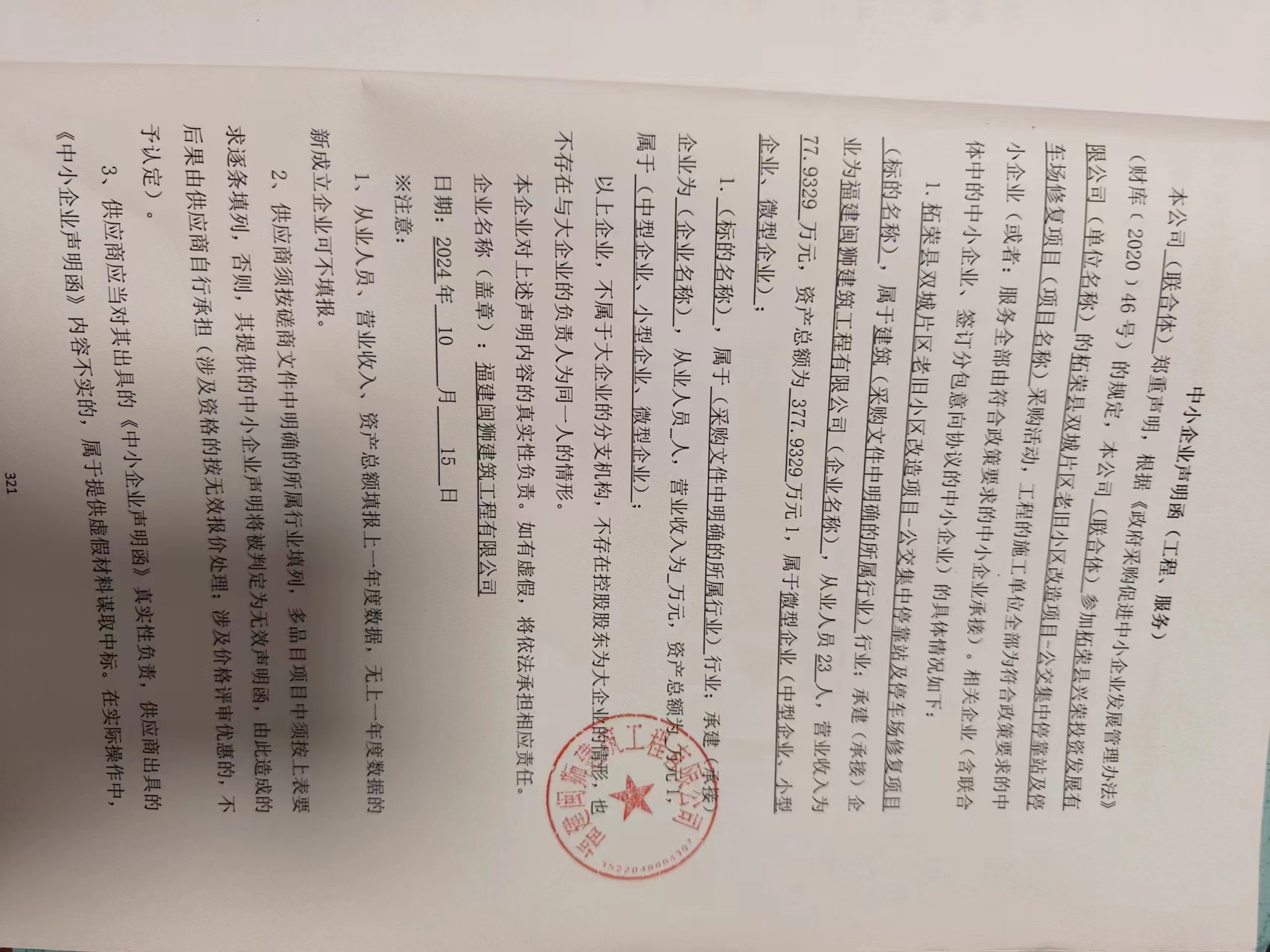 供應商名稱:福建閩獅建筑工程有限公司