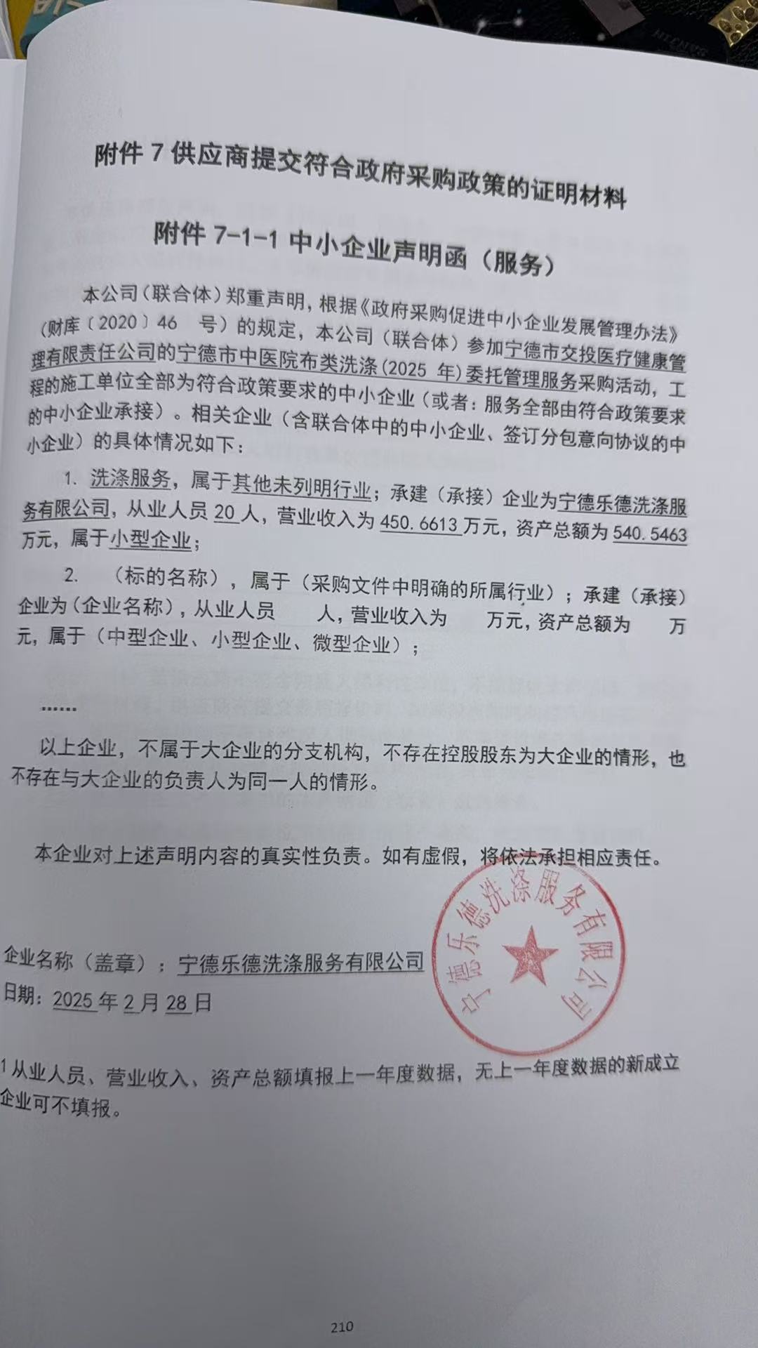 中標(biāo)人名稱:寧德樂(lè)德洗滌服務(wù)有限公司