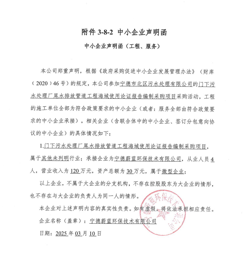 二、項(xiàng)目名稱:門下污水處理廠尾水排放管道工程海域使用論證報告編制采購項(xiàng)目