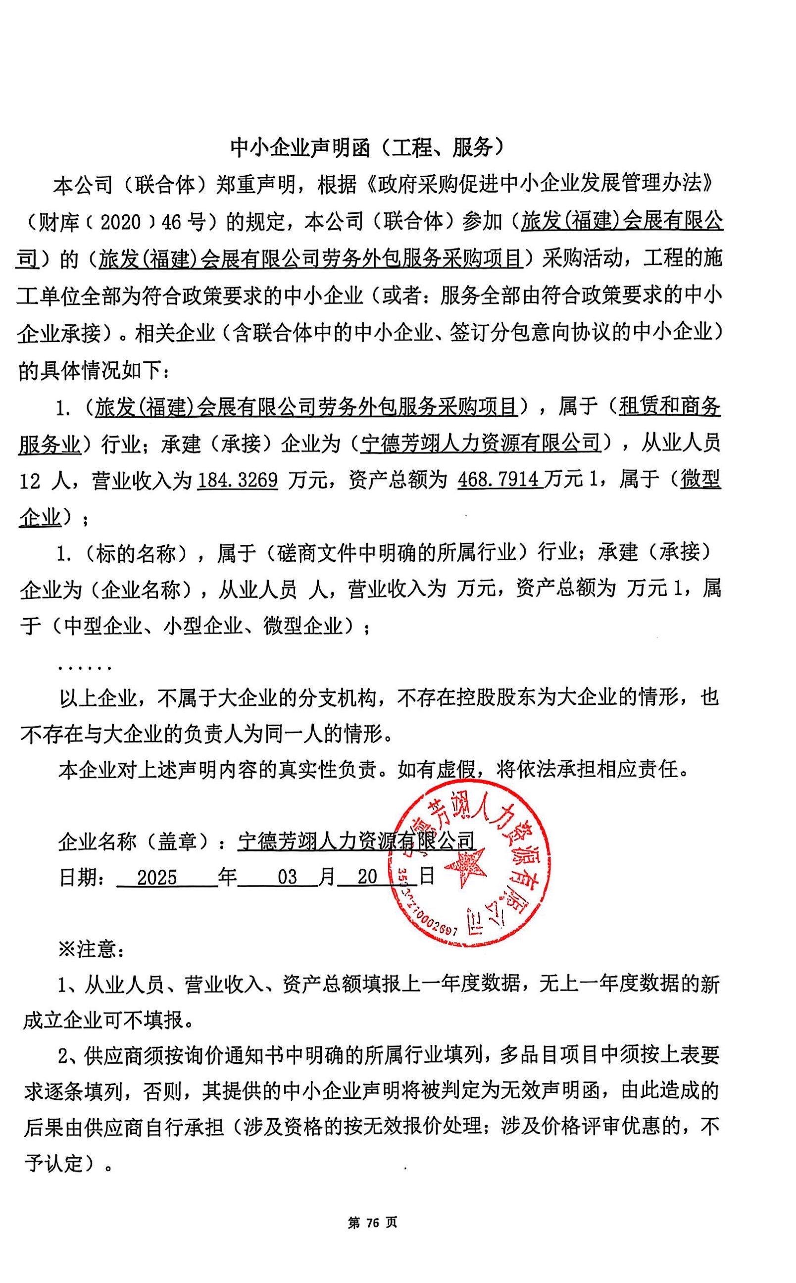 二、項(xiàng)目名稱:旅發(fā)(福建)會(huì)展有限公司勞務(wù)外包服務(wù)采購(gòu)項(xiàng)目