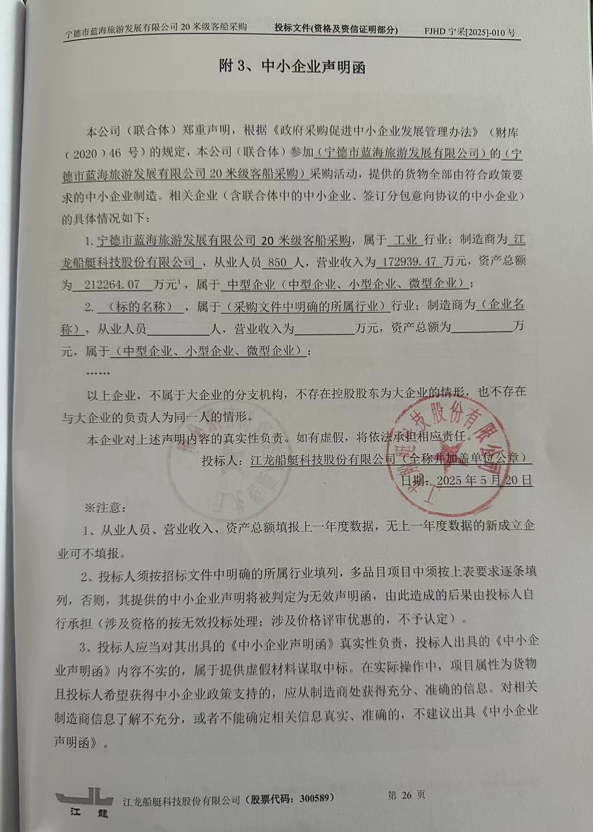 成交供應(yīng)商:江龍船艇科技股份有限公司,評(píng)審總得分:99.00分