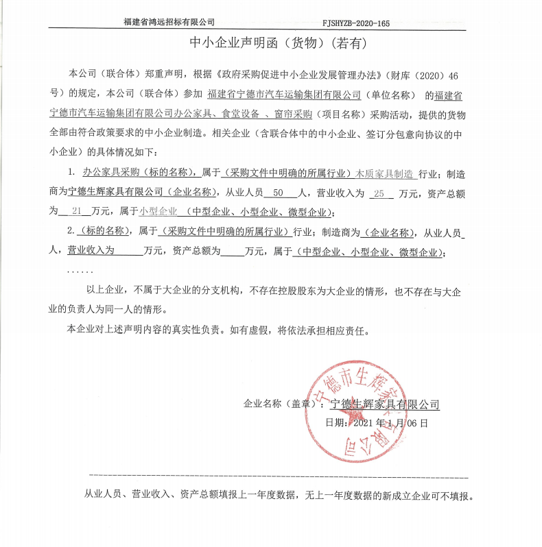 供應(yīng)商名稱:寧德市生輝家具有限公司(合同包1)
