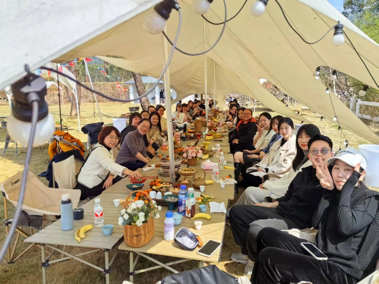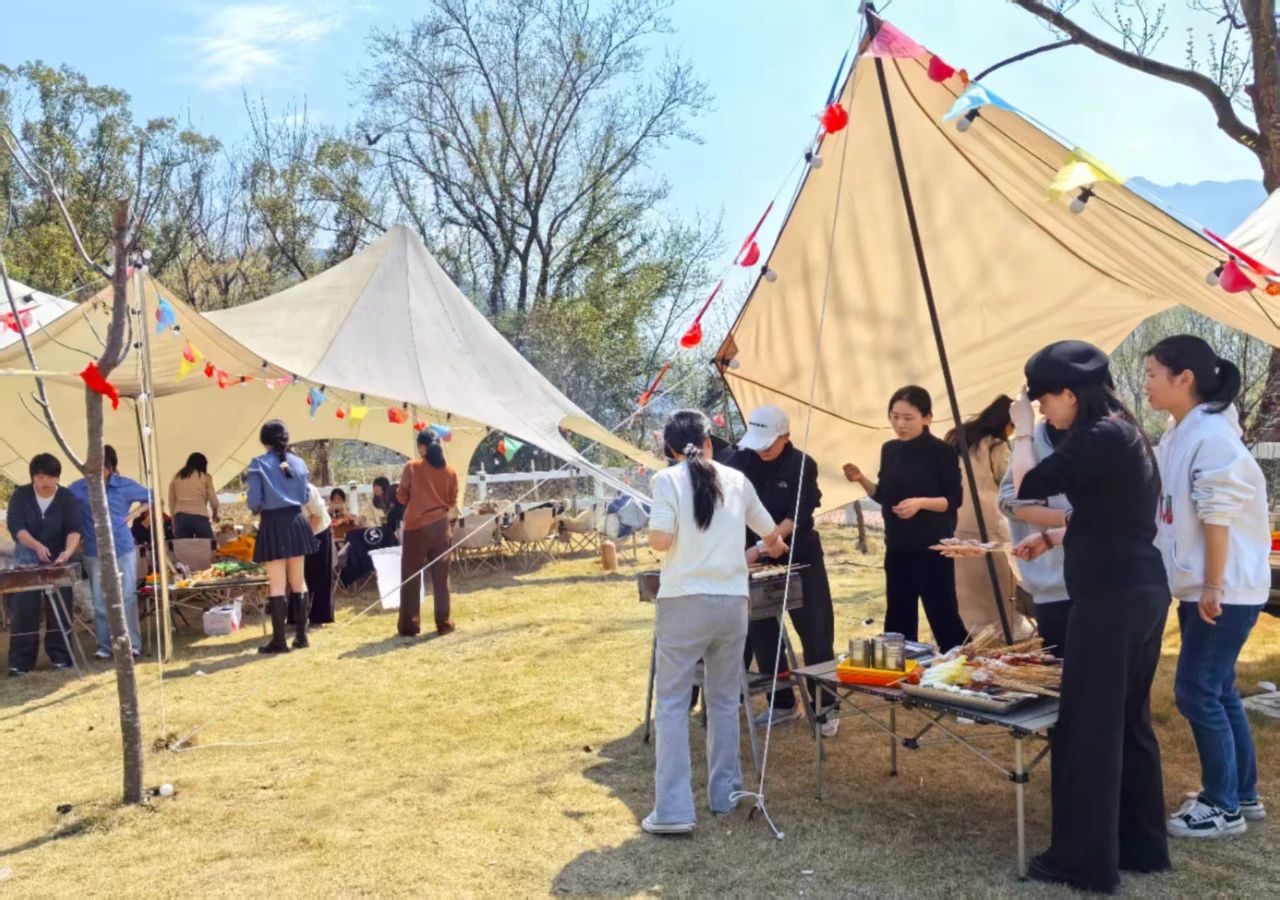 午后活動聚焦團(tuán)隊(duì)協(xié)作與身心放松。在霍童鎮(zhèn)文湖村戶外營地,女職工們開展分組燒烤。大家分工協(xié)作,有的架起烤爐生火備炭,有的巧手翻動肉串蔬菜,有的調(diào)制醬料搭配美食,現(xiàn)場炊煙裊裊,香氣四溢,平日嚴(yán)謹(jǐn)?shù)穆殘鼍⒃诖稛熤芯`放生活智慧。